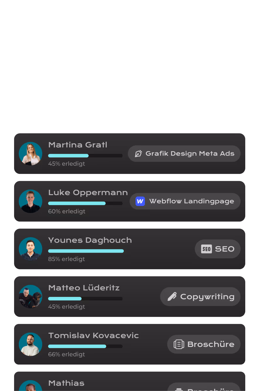 Wir sind dein flexibles Design-Team on Demand. Monatlich neue Ad Creatives, Landingpages und Grafiken für deine Kampagnen – schnell, professionell, unkompliziert.