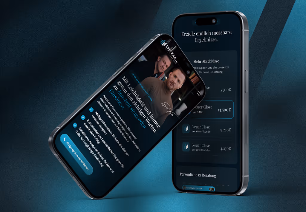 Innerhalb eines Monats nach dem Launch der neuen Brandingpage erzielte Erik Kaatz seinen ersten sechsstelligen Monatsumsatz. Die Website generiert seither kontinuierlich qualifizierte Anfragen.